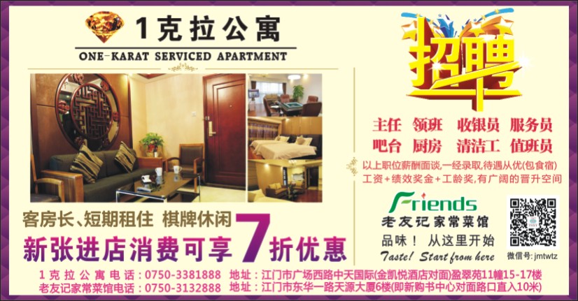 地址:江门市广场西路中天国际(金凯悦酒店对面)盈翠苑11幢15-17楼