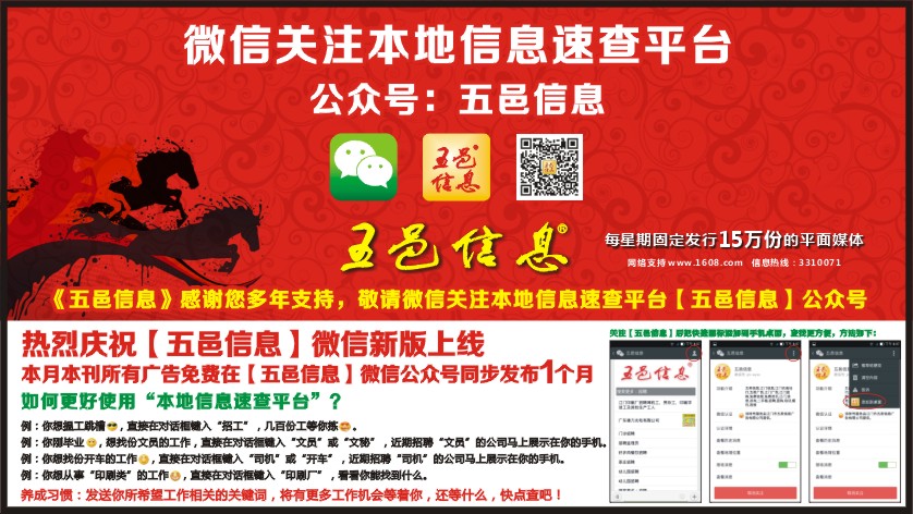 本月本刊所有广告免费在【五邑信息】微信公众号同步发布1个月