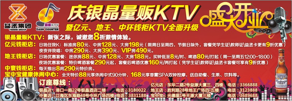 银晶量贩KTV:新张之际,诚邀您8折激情体验。