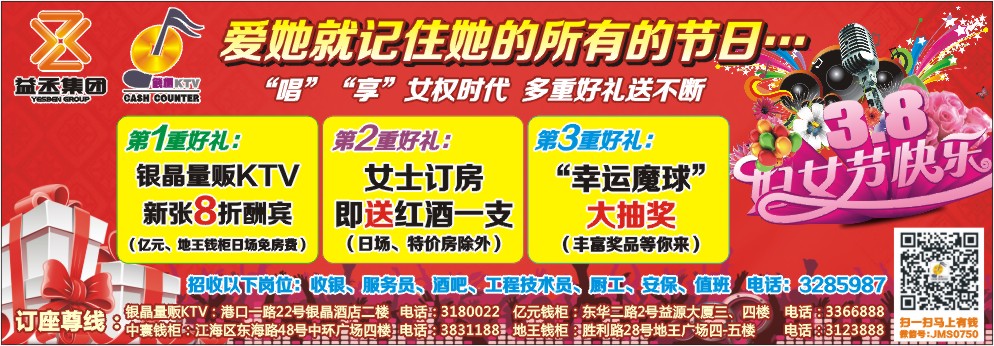 银晶量贩KTV:港口一路22号银晶酒店二楼 电话:3180022