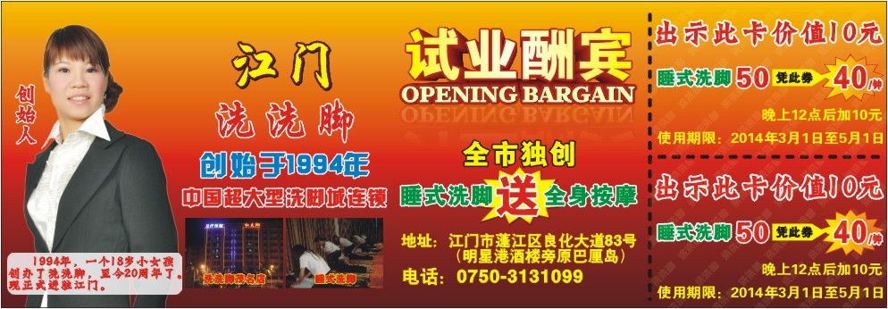 1994年,一个18岁小女孩创办了洗洗脚,至今20周年了。现正式进驻江门。