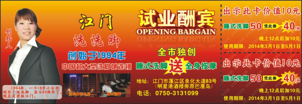 1994年,一个18岁小女孩创办了洗洗脚,至今20周年了。现正式进驻江门。