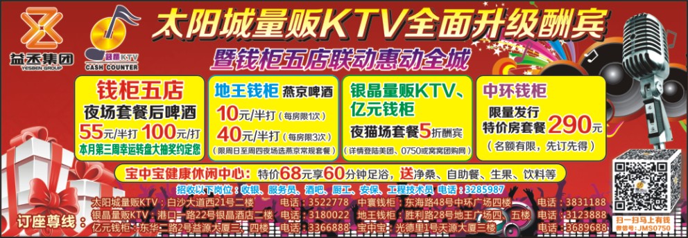 银晶量贩KTV、亿元钱柜夜猫场套餐5折酬宾