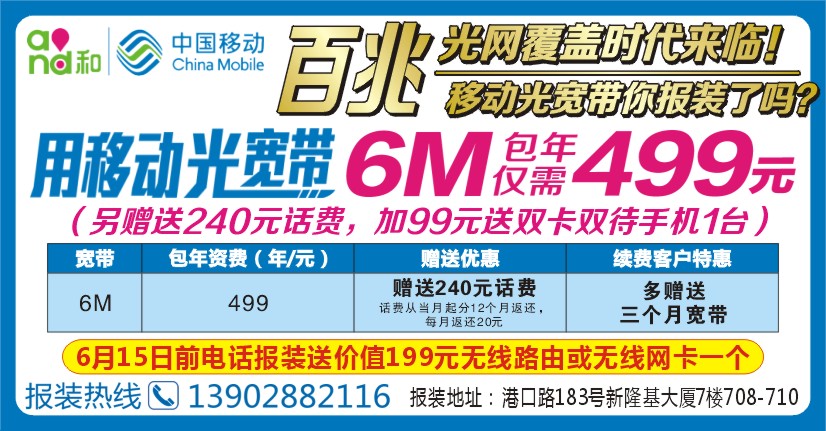 6月15日前电话报装送价值199元无线路由或无线网卡一个