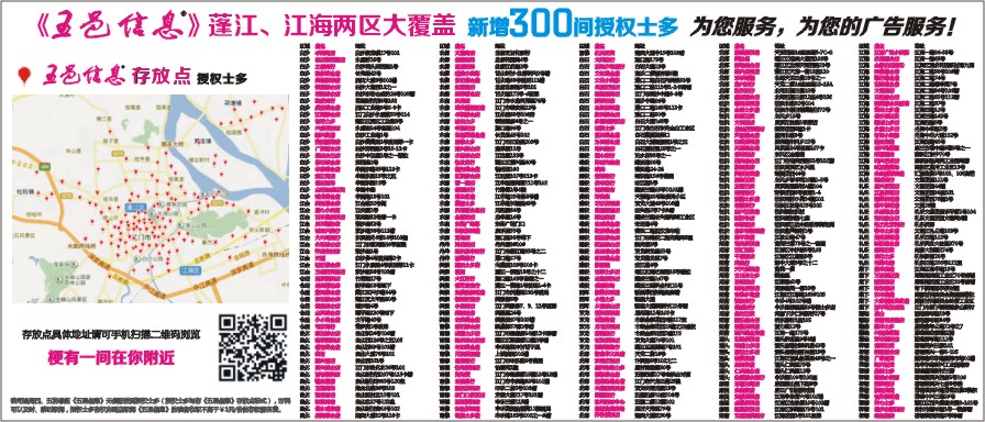 《五邑信息》蓬江、江海两区大覆盖 新增300间授权士多 为您服务,为您的广告服务!