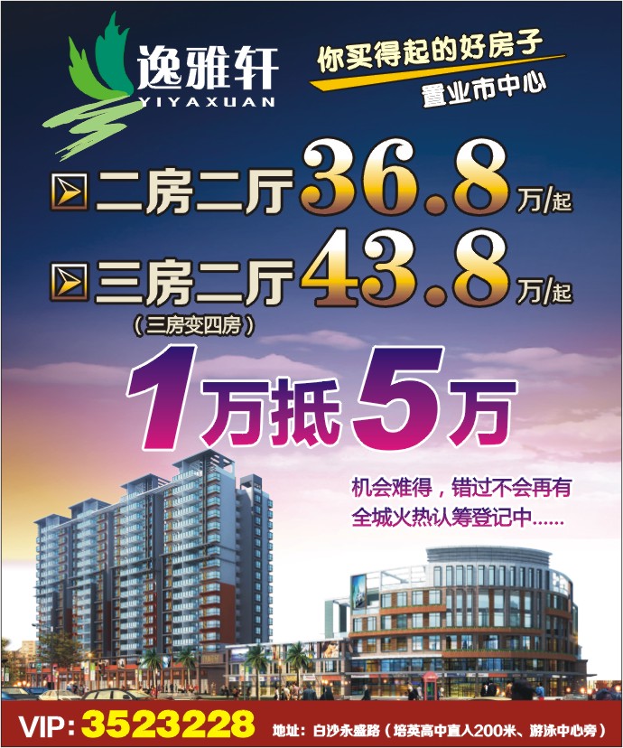 VIP:3523228 地址:白沙永盛路(培英高中直入200米、游泳中心旁)