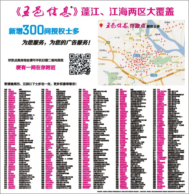 《五邑信息》蓬江、江海两区大覆盖 新增300间授权士多 为您服务,为您的广告服务!
