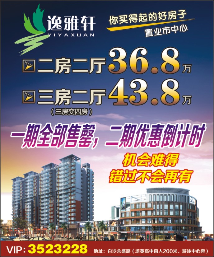 VIP:3523228 地址:白沙永盛路(培英高中直入200米、游泳中心旁)