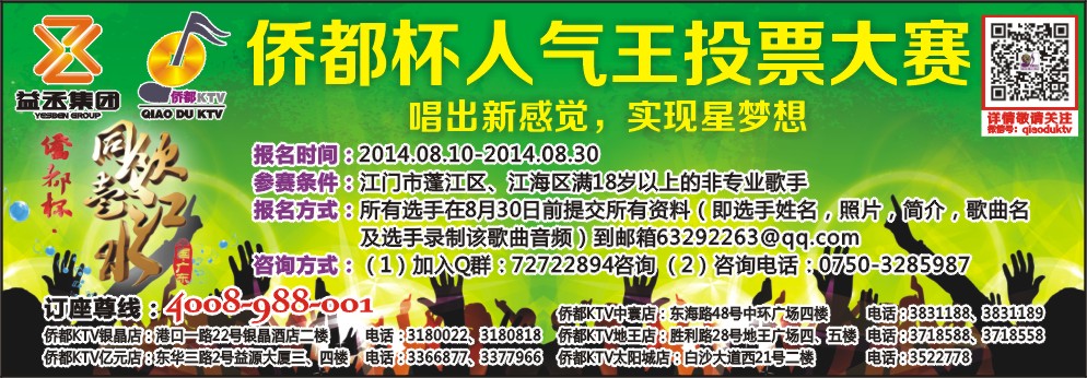 参赛条件:江门市蓬江区、江海区满18岁以上的非专业歌手