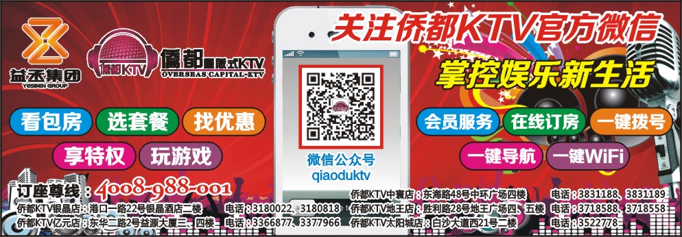 侨都KTV中寰店:东海路48号中环广场四楼 电话:3831188、3831189