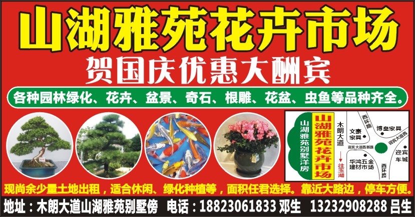 各种园林绿化、花卉、盆景、奇石、根雕、花盆、虫鱼等品种齐全。