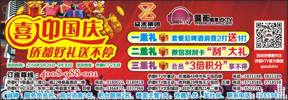 活动时间:2014年9月28日-9月30日 活动地址:侨都KTV五店