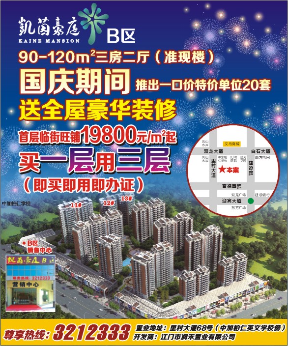 尊享热线:3212333 置业地址:里村大道68号(中加柏仁英文学校傍)开发商:江门市润禾置业有限公司