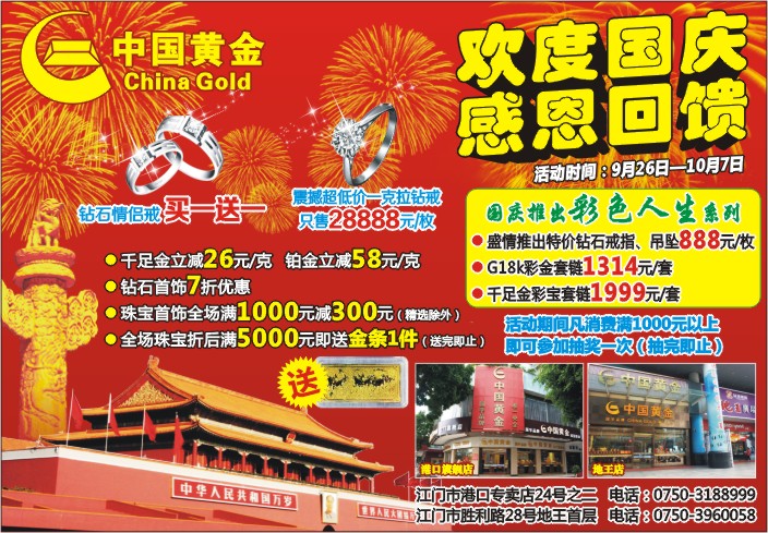 全场珠宝折后满5000元即送金条1件(送完即止)