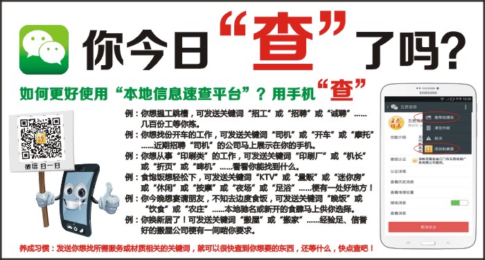 例:你想找份开车的工作,可发送关键词“司机”或“开车”或“摩托”……近期招聘“司机”的公司马上展示在你的手机。