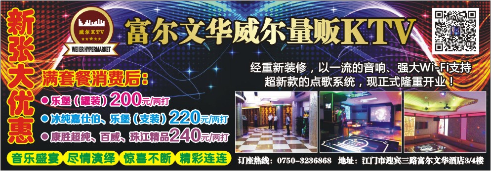 经重新装修,以一流的音响、强大Wi-Fi支持超新款的点歌系统,现正式隆重开业!