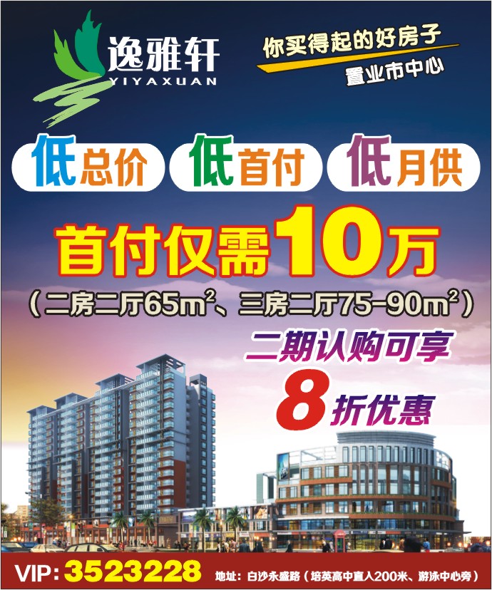 VIP:3523228 地址:白沙永盛路(培英高中直入200米、游泳中心旁)