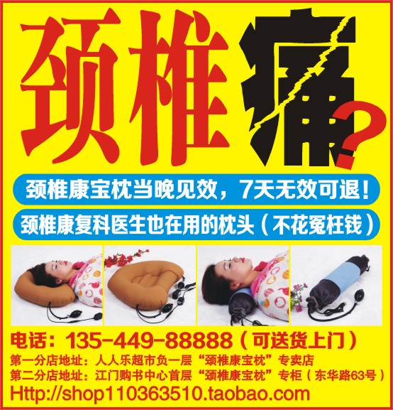 第二分店地址:江门购书中心首层“颈椎康宝枕”专柜(东华路63号)
