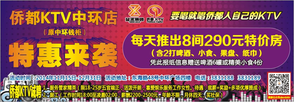 侨都KTV中环店(原中环钱柜)特惠来袭