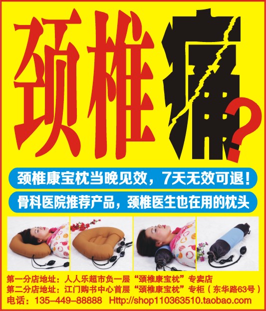 第二分店地址:江门购书中心首层“颈椎康宝枕”专柜(东华路63号)