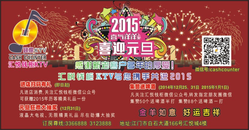 凡进店消费,关注汇悦钱柜微信公众号,可获赠2015年历等精美礼品一份