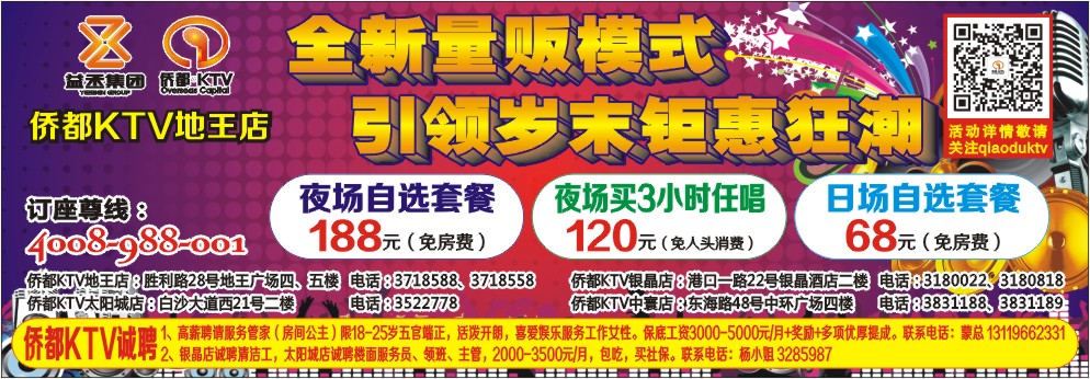 侨都KTV中寰店:东海路48号中环广场四楼 电话:3831188、3831189