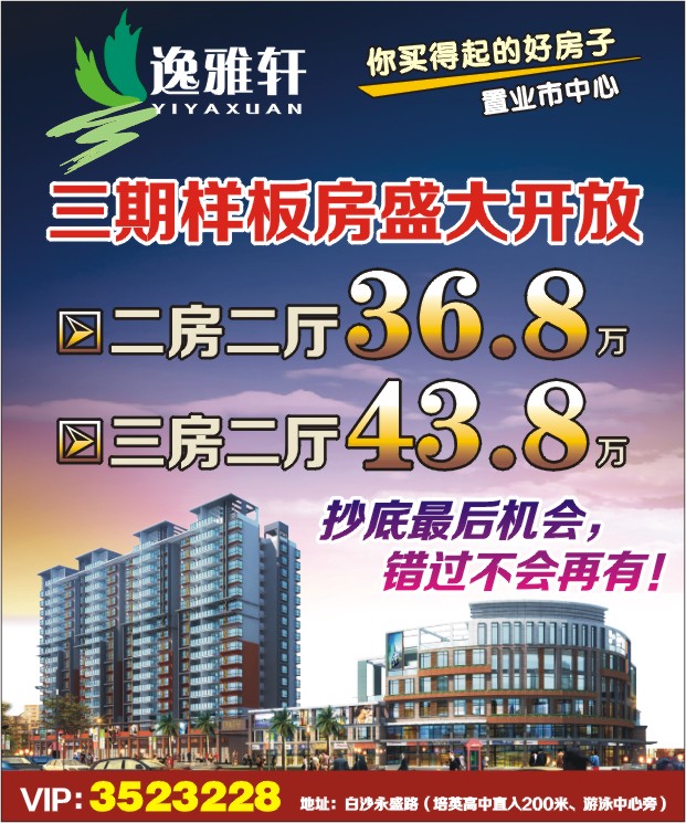 VIP:3523228 地址:白沙永盛路(培英高中直入200米、游泳中心旁)