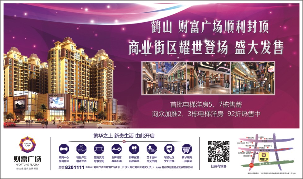 项目地址:鹤山市沙坪财富广场1号(江沙公路近鹤山大道交汇处)