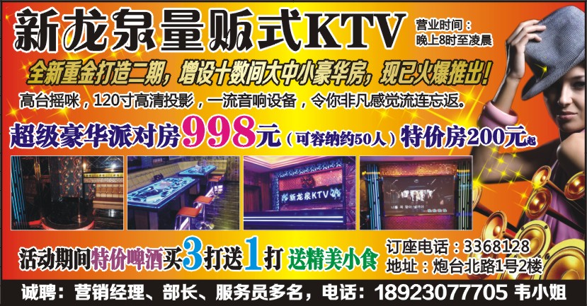 诚聘:营销经理、部长、服务员多名,电话:18923077705 韦小姐