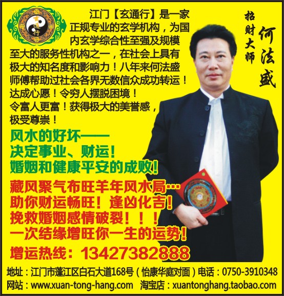 江门【玄通行】是一家正规专业的玄学机构,为国内玄学综合性至强及规模至大的服务性机构之一,在社会上具有极大的知名度和影响力!八年来何法盛师傅帮助过社会各界无数信众成功转运!达成心愿!令穷人摆脱困境!令富人更富!获得极大的美誉感,极受尊崇!