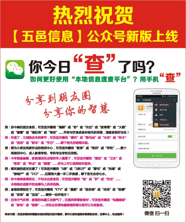 热烈祝贺【五邑信息】公众号新版上线