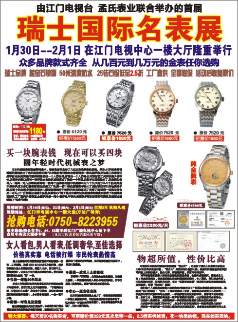 展销地址:江门市电视中心一楼大堂(万达广场旁)