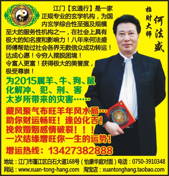 江门【玄通行】是一家正规专业的玄学机构,为国内玄学综合性至强及规模至大的服务性机构之一,在社会上具有极大的知名度和影响力!八年来何法盛师傅帮助过社会各界无数信众成功转运!达成心愿!令穷人摆脱困境!令富人更富!获得极大的美誉度,极受尊崇!