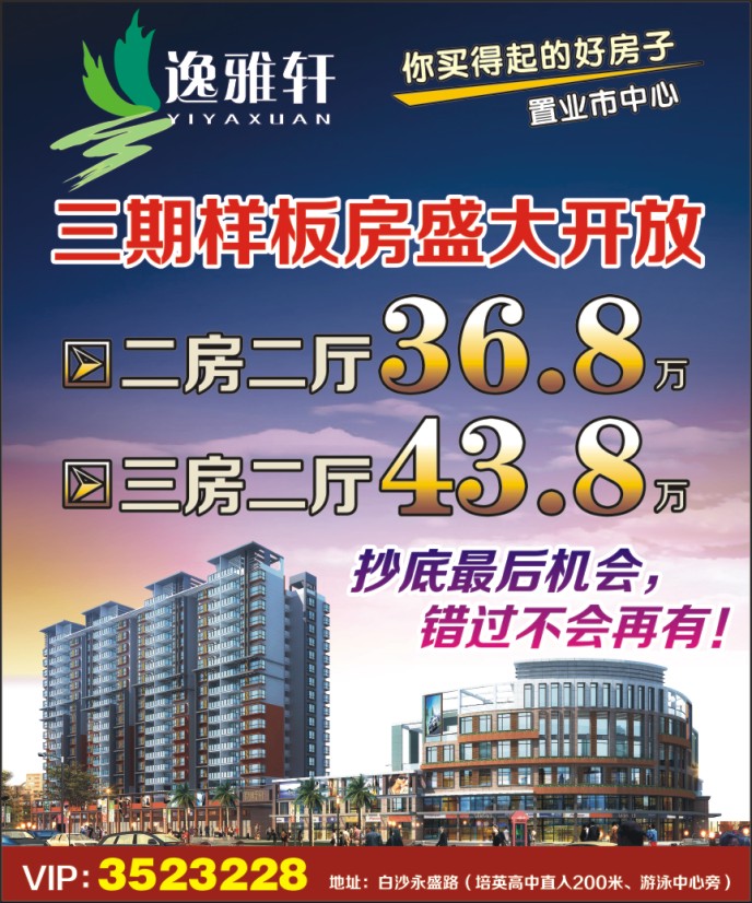 VIP:3523228 地址:白沙永盛路(培英高中直入200米、游泳中心旁)