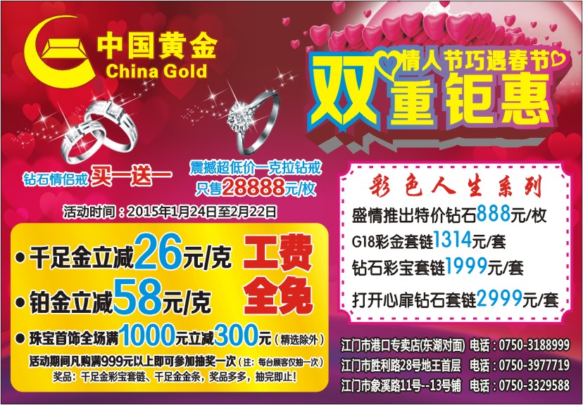 奖品:千足金彩宝套链、千足金金条,奖品多多,抽完即止!