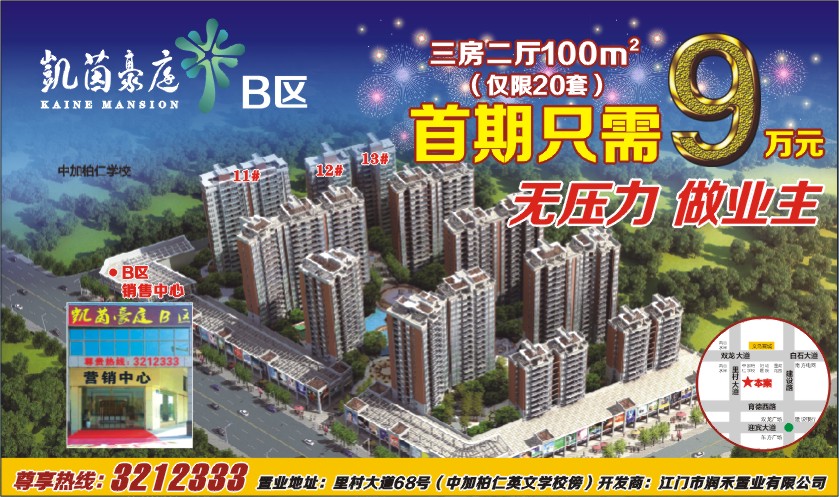 尊享热线:3212333 置业地址:里村大道68号(中加柏仁英文学校傍)开发商:江门市润禾置业有限公司