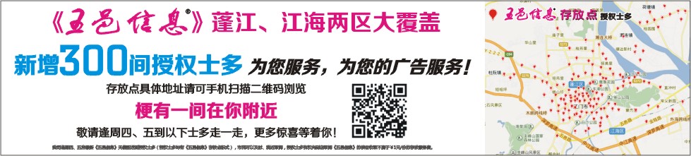 《五邑信息》蓬江、江海两区大覆盖 新增300间授权士多 为您服务,为您的广告服务!