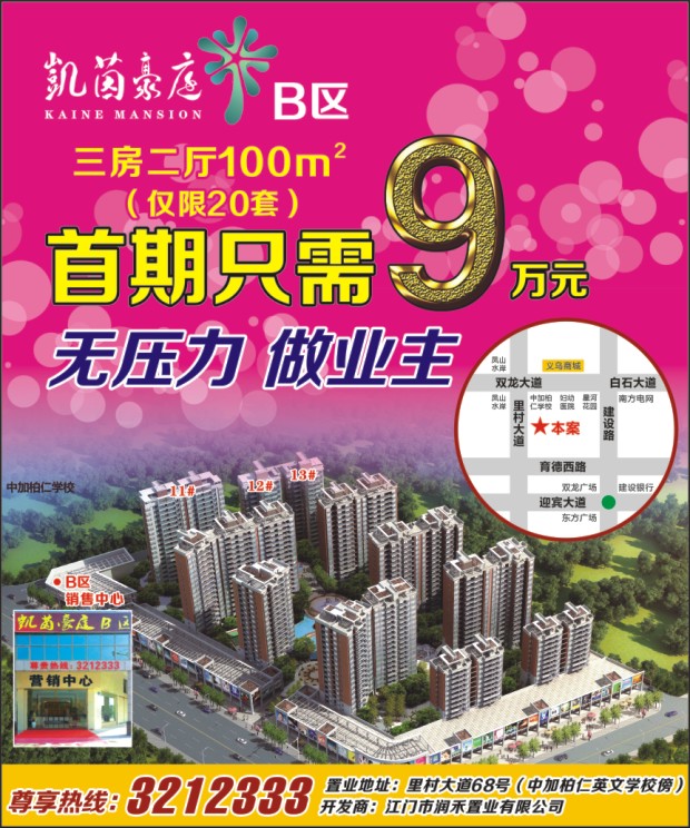 尊享热线:3212333 置业地址:里村大道68号(中加柏仁英文学校傍)开发商:江门市润禾置业有限公司