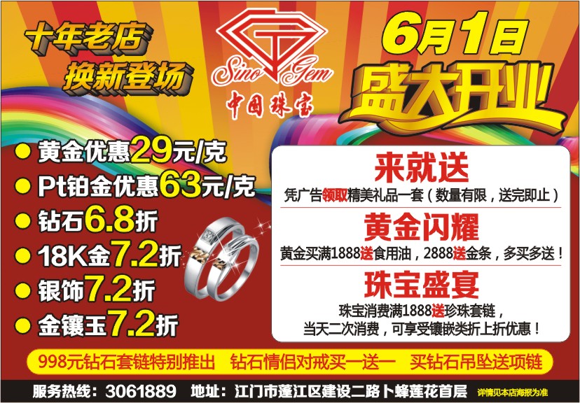 珠宝消费满1888送珍珠套链,当天二次消费,可享受镶嵌类折上折优惠!