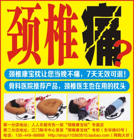 第二分店地址:江门购书中心首层“颈椎康宝枕”专柜(东华路63号)