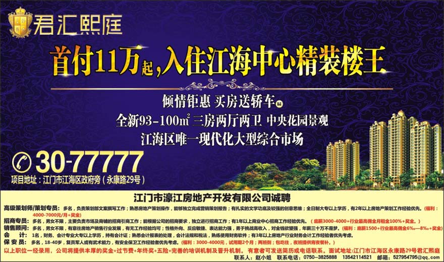 江门市濠江房地产开发有限公司诚聘