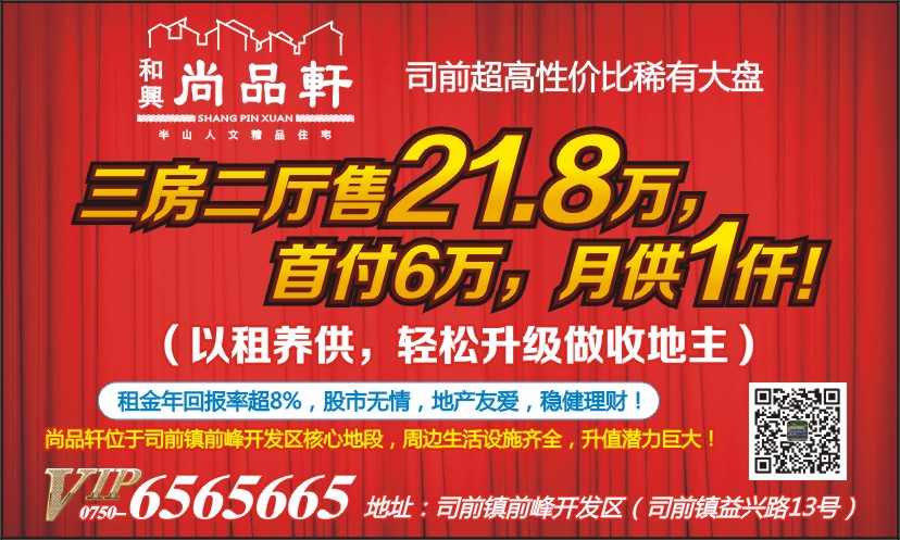 尚品轩位于司前镇前峰开发区核心地段,周边生活设施齐全,升值潜力巨大!