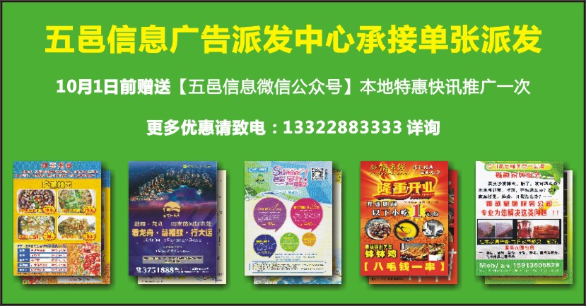 10月1日前赠送【五邑信息微信公众号】本地特惠快讯推广一次