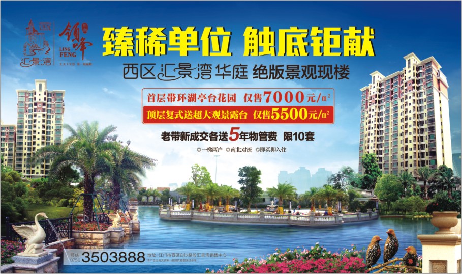项目地址:江门市西区白沙路段汇景湾售房中心(游泳中心旁)