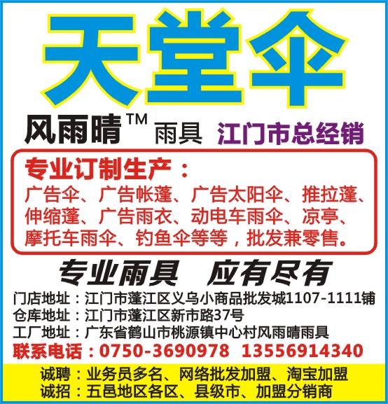 工厂地址:广东省鹤山市桃源镇中心村风雨晴雨具