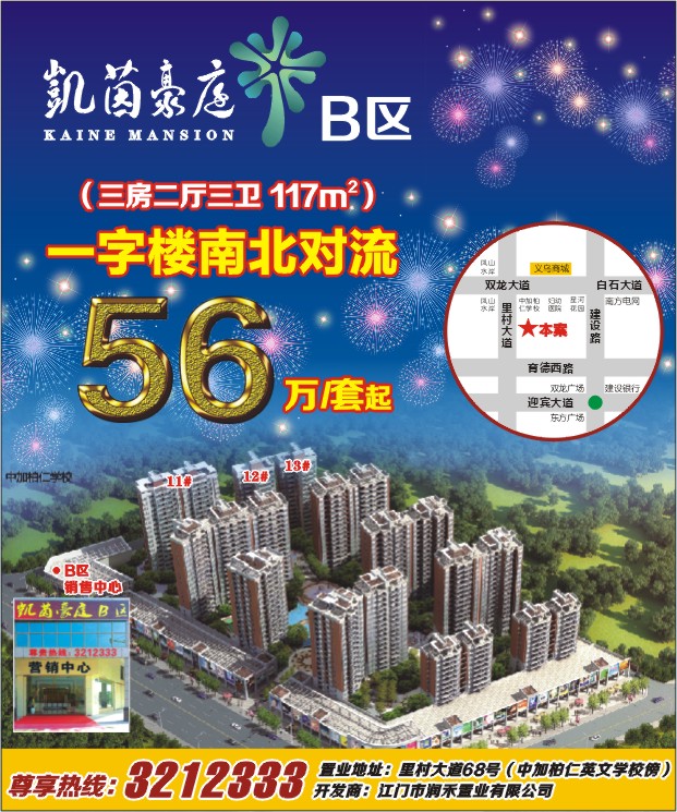 尊享热线:3212333 置业地址:里村大道68号(中加柏仁英文学校傍)开发商:江门市润禾置业有限公司