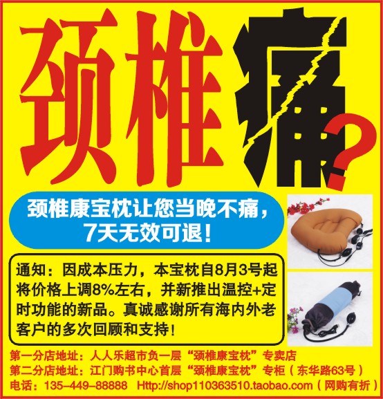 第二分店地址:江门购书中心首层“颈椎康宝枕”专柜(东华路63号)
