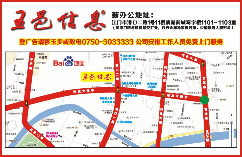 登广告请移玉步或致电0750-3033333 公司安排工作人员免费上门服务