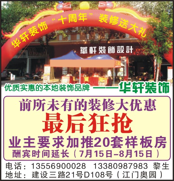 华轩装饰“十周年”装修送大礼