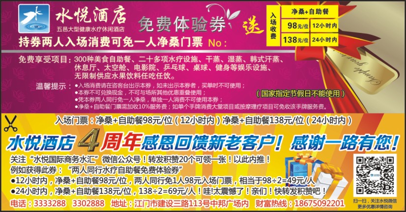 水悦酒店4感恩回馈新老客户!感谢一路有您!